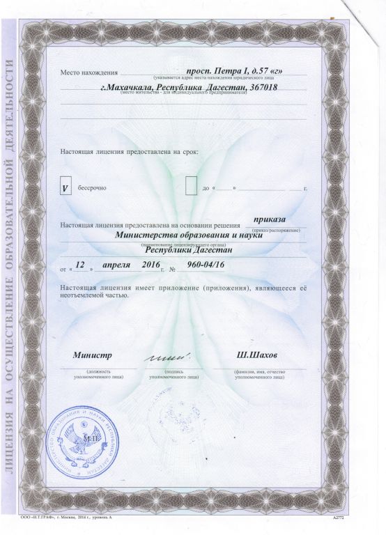 | Адрес местонахождения образовательной организации* | 367018, г.Махачкала улица Каримова 9 |